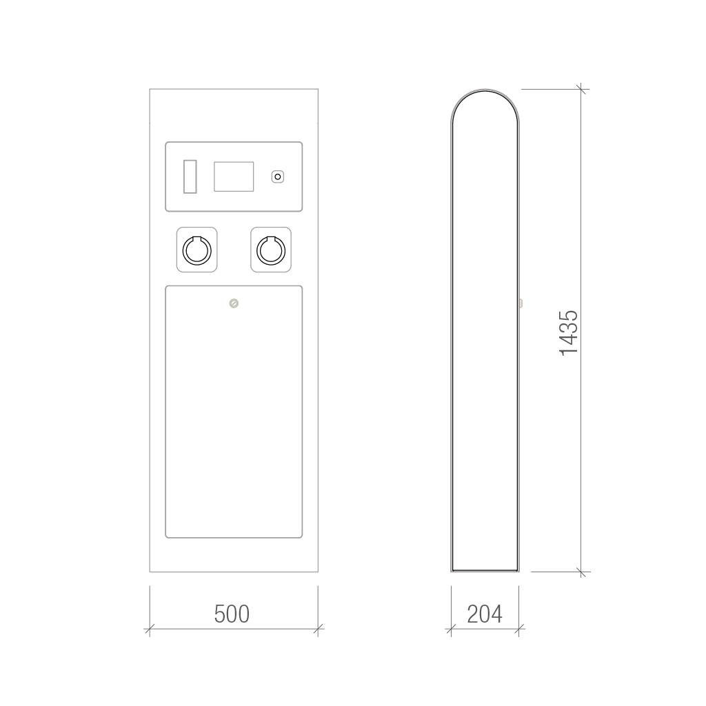 Je vybavena jedním či dvěma Mennekes Type 2 přípojnými body a displejem zobrazujícím informace o stavu dobíjení.