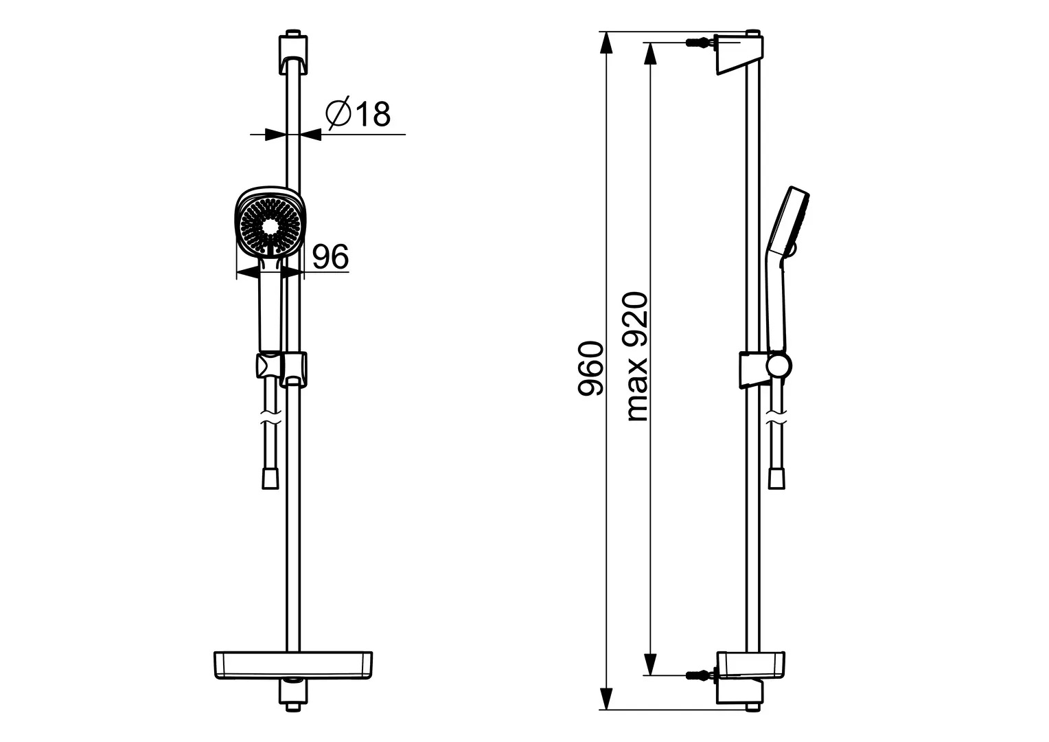 ● Díly sprch: Ruční sprcha, Sprchová tyč, Sprchová tyč s nastavitelnou roztečí úchytů, Mýdelník, Sprchová hadice (1750 mm), Technologie proti usazeninám (snadno se čistí)