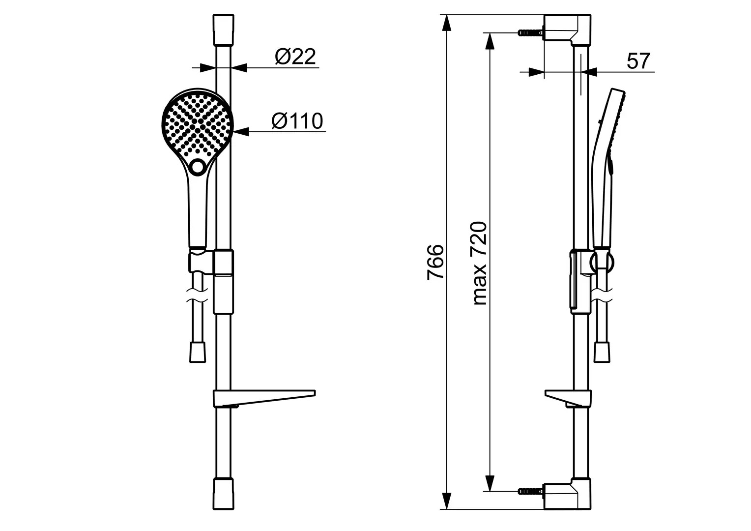 ● Díly sprch: Ruční sprcha, Sprchová tyč, Variabilní montážní body, Sprchová tyč s nastavitelnou roztečí úchytů, Mýdelník, Technologie proti usazeninám (snadno se čistí), Sprchová hadice (1750 mm), Sprchová hadice s ochranou proti překroucení