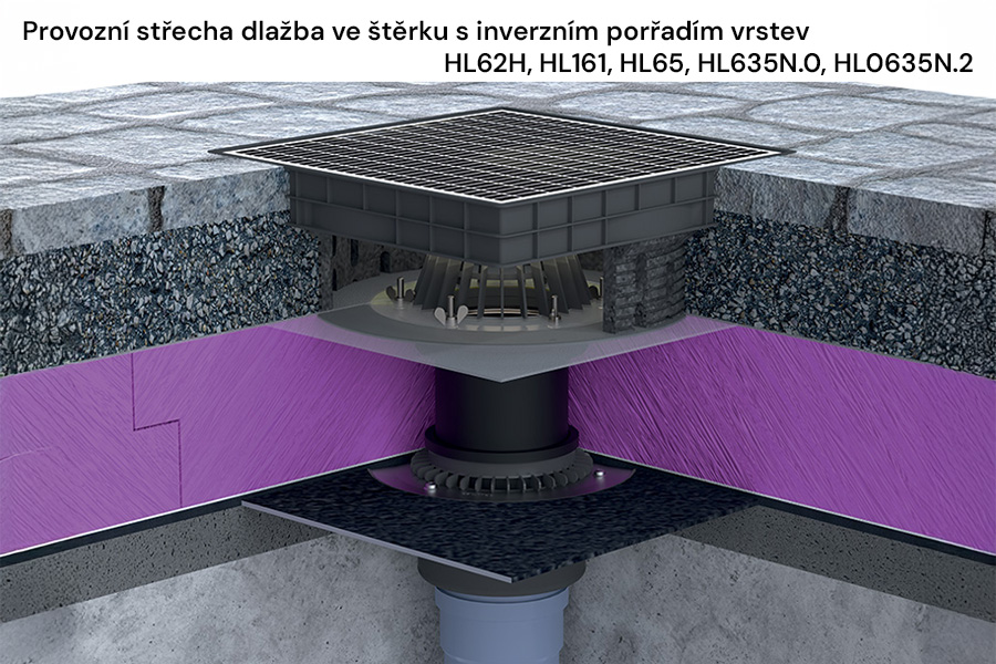 HL nabízí střešní vtoky pro gravitační odvodnění všech druhů plochých střech v návaznosti na jejich konstrukční řešení a materiál vodotěsné izolace. V tomto detailu se potkávají představy projektantů s možnostmi realizačních firem. Různé konstrukce střech, skladby střešních plášťů a požadavky na jejich užívání vyžadují široké možnosti kombinací střešních vtoků. Pro projektování jsou důležité zejména tyto zásady: