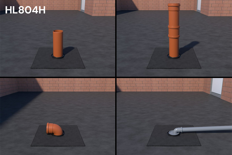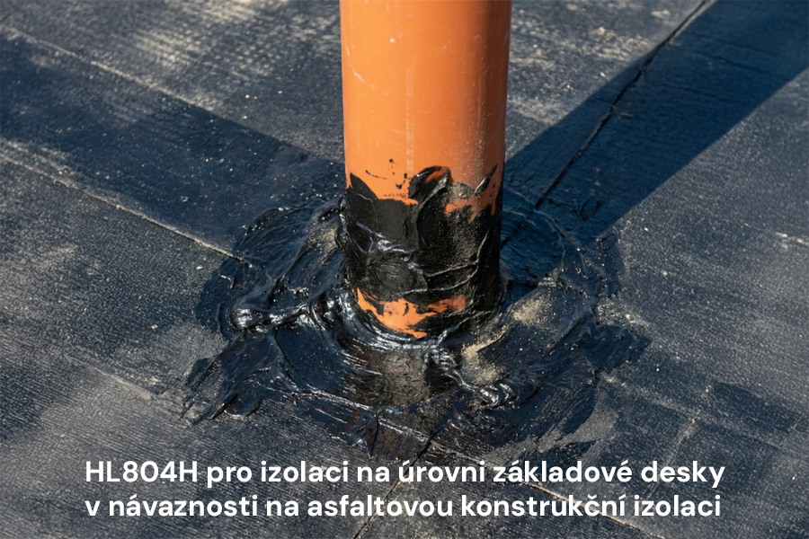 Kompaktní manžeta HL804(H) je určena pro izolaci potrubních prostupů DN110 a DN50 na úrovni základové desky v návaznosti na asfaltovou konstrukční izolaci.