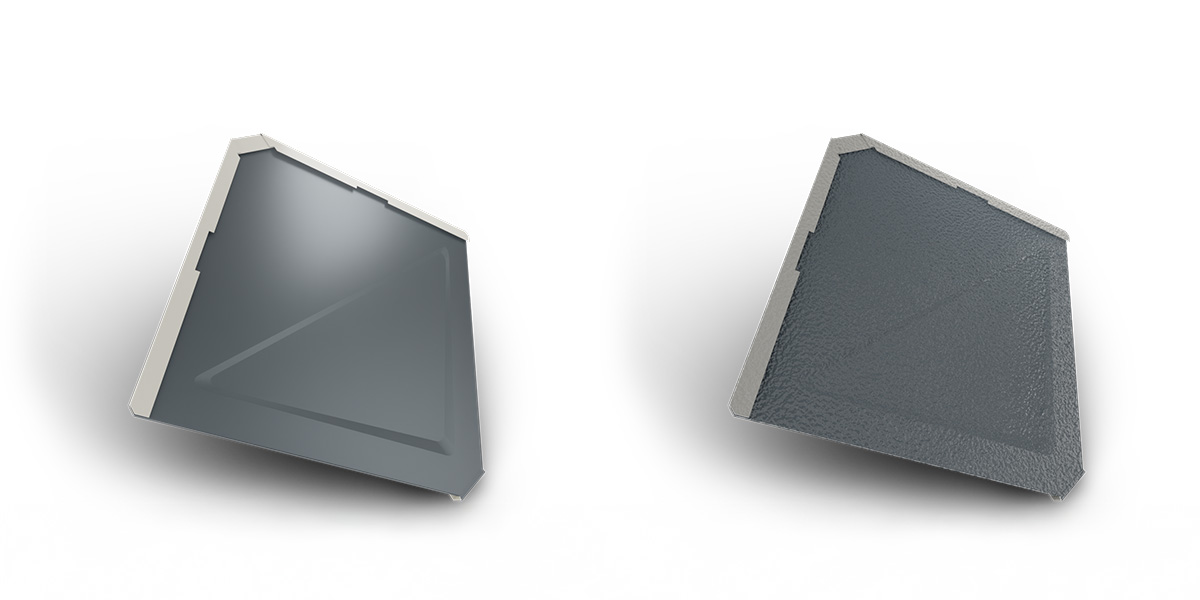 ● Thyssenkrupp pladur® Relief Icecrystal: RAL 7016, 9005 - tloušťka materiálu 0,6 mm; tloušťka barvy 36 µm
