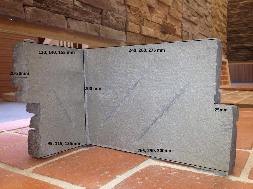 Castelo je kamenný obkladový aglomerát ve tvaru štípaných skalních úlomků. Jednotlivé prvky jsou ve tvaru písmena "Z". Možnost všestranné aplikace - exteriér a interiér.