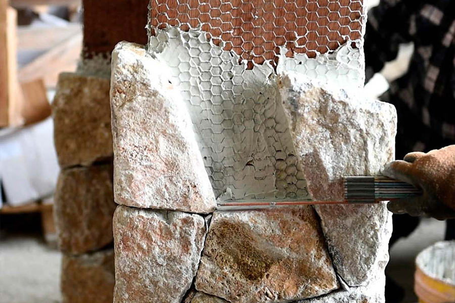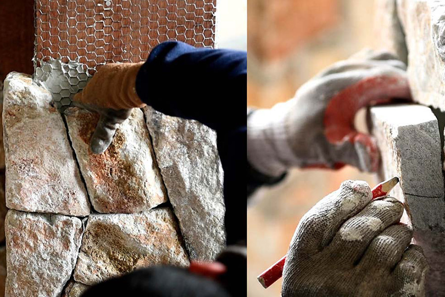 Castelo je kamenný obkladový aglomerát ve tvaru štípaných skalních úlomků....