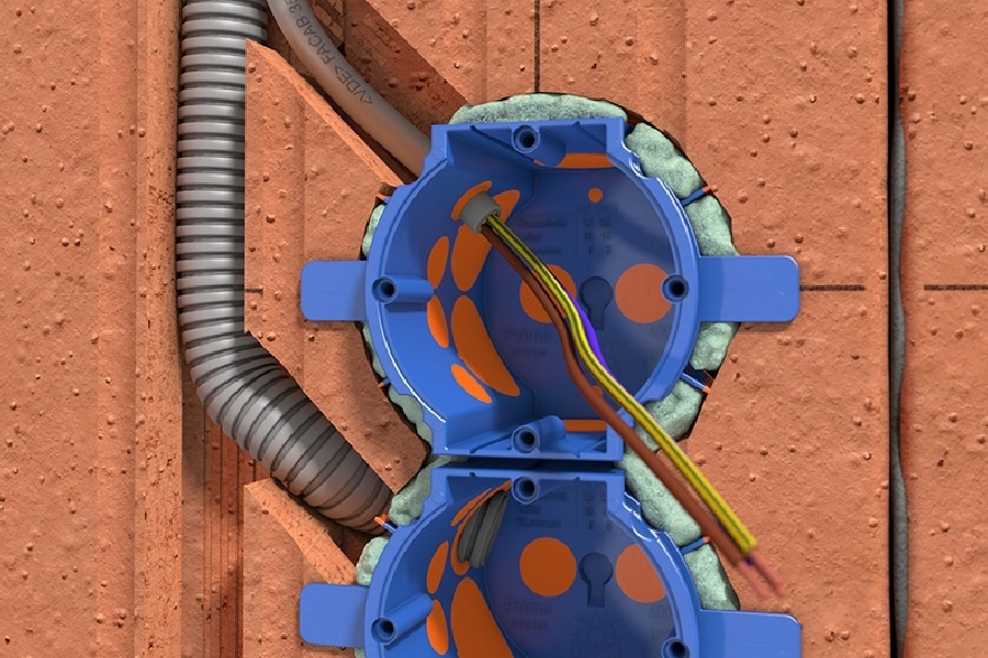 Krabice PRIMO instalují pomocí nízkoexpanzní termopěny. Rychle, čistě a s lepší tepelnou i akustickou izolací až 64 dB v akustických stěnách. Díky membráně a pěně nehrozí tepelné mosty. Ideální volba i pro pasivní domy.