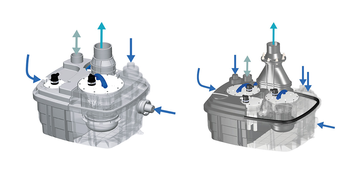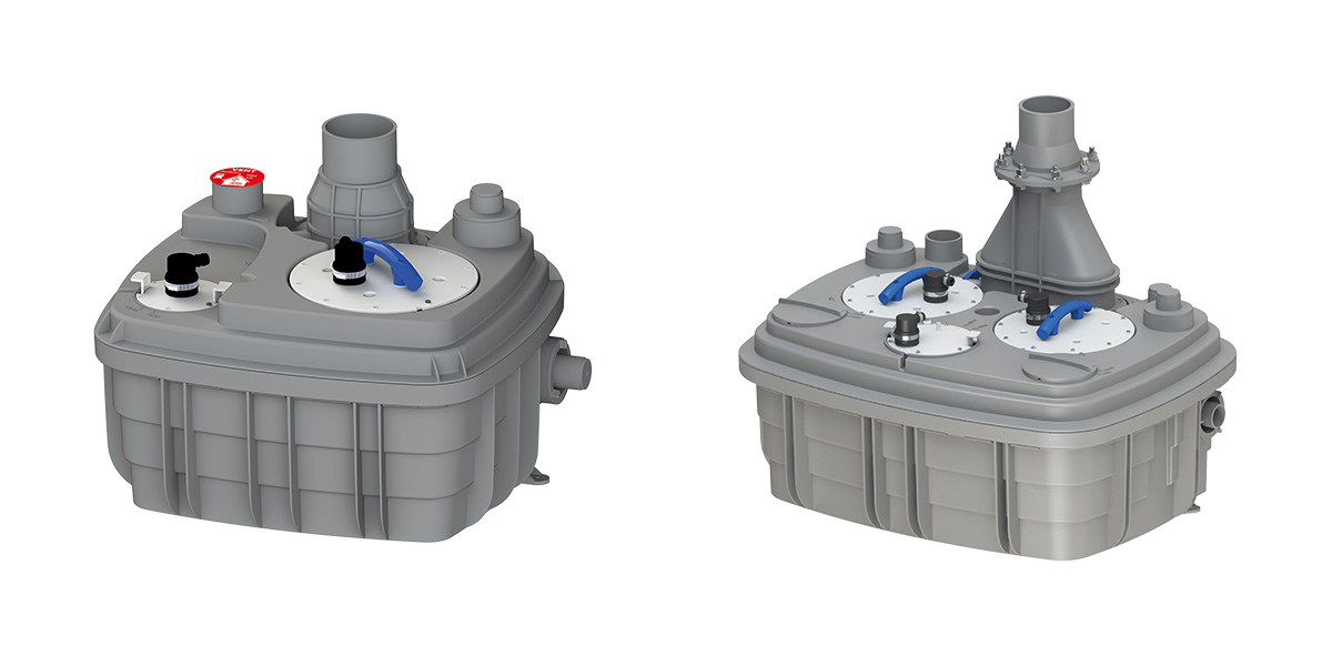 Varianta s jedním čerpadlem Sanicubic 1 VX je vhodná pro rodinné domy nebo lokální komerční provozy. Součástí stanice je externí ovládací box s vizuálním alarmem.