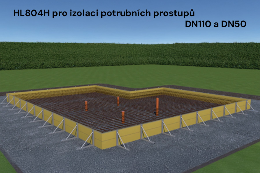 Kompaktní manžeta HL804(H) je určena pro izolaci potrubních prostupů DN110 a DN50 na úrovni základové desky v návaznosti na asfaltovou konstrukční izolaci.