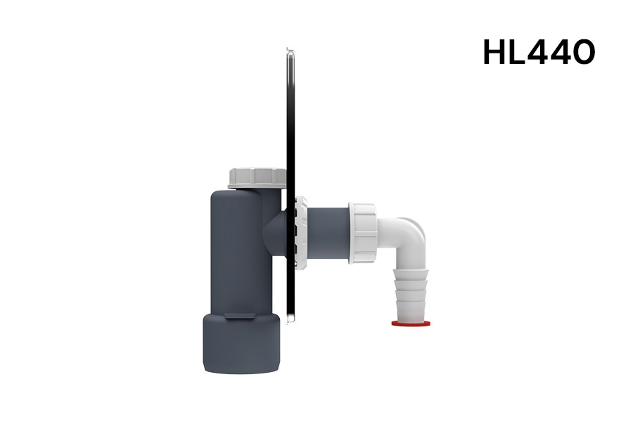K jednodušší montáži a z estetických důvodů nabízí HL navíc kombinace zápachových uzávěrek s výtokovým ventilem na hadici.