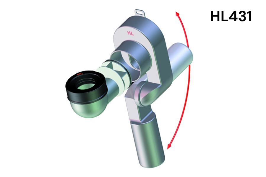 Patentovaný otočný kloub na odtoku zápachové uzávěrky umožňuje připojení na ležaté nebo svislé kanalizační připojovací potrubí bez pnutí, což usnadňuje montáž a přizpůsobení skutečným stavebním podmínkám.
