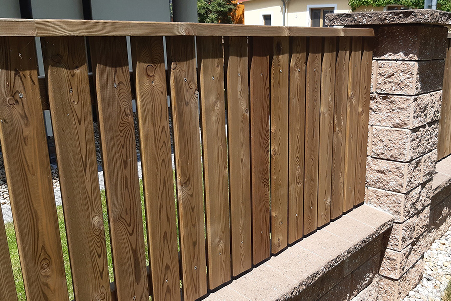 Díky tlakové impregnaci vydrží dřevo výrazně déle než když je ošetřeno jiným způsobem. Plotová prkna můžete následně ošetřit olejovou lazurou a tím dosáhnou požadovaného odstínu.