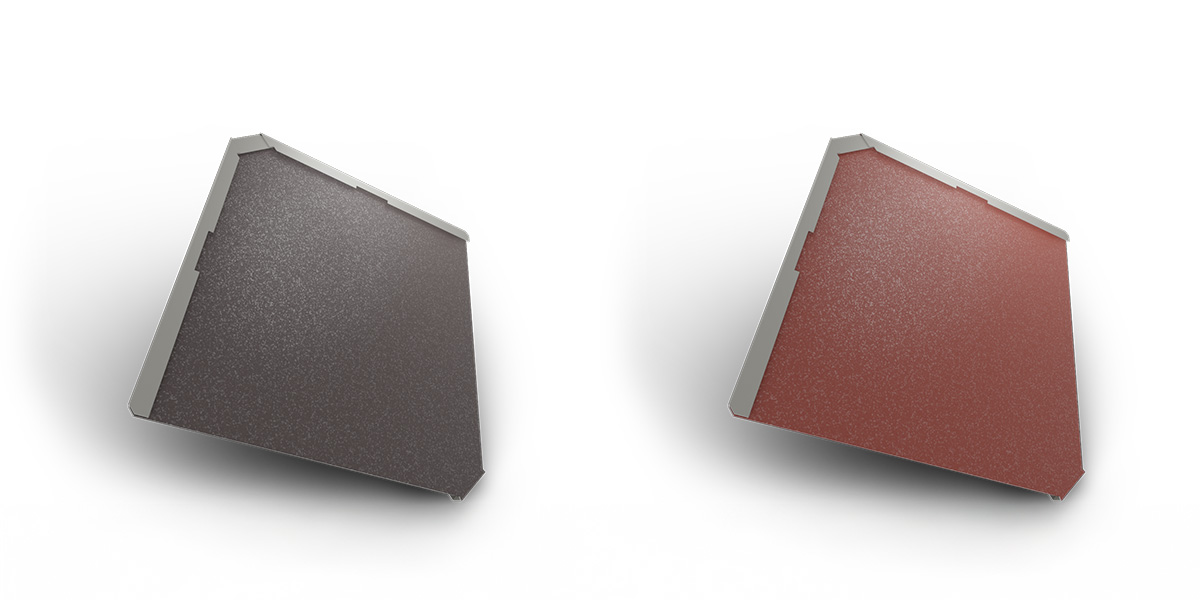● Thyssenkrupp pladur® Wrinkle: RAL 3009, 7016, 7043, 8019, 9005 - tloušťka materiálu 0,55 mm; tloušťka barvy 35 µm