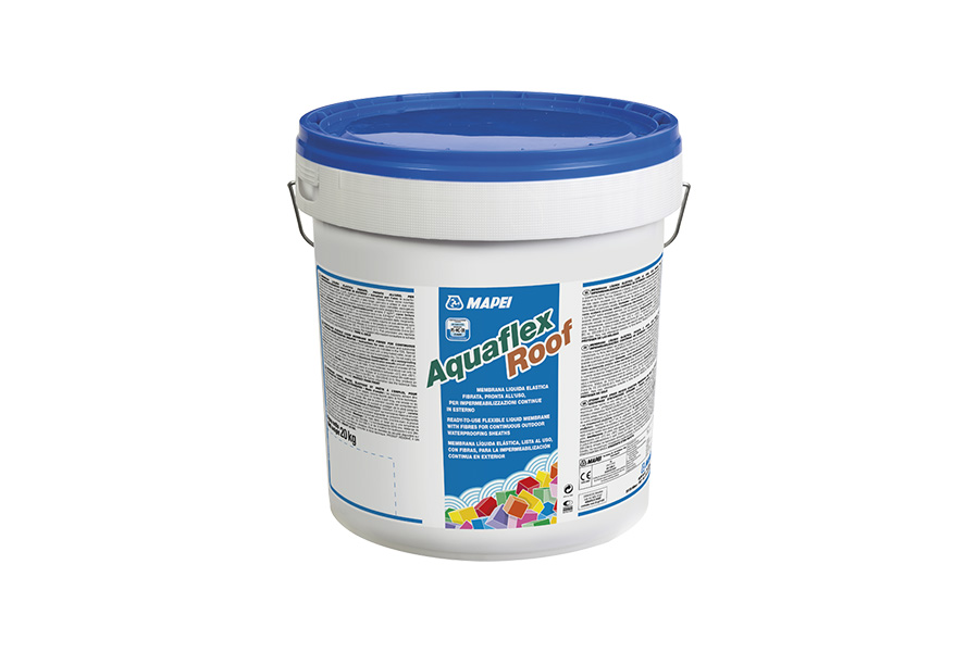 Pružná tekutá membrána s obsahem vláken, určená k okamžitému použití, na pohledovou hydroizolaci povrchů v exteriéru.
