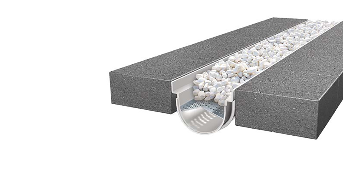 MEA DECOSTONE uvolněte svojí fantazii Pro odvod vody nemusí sloužit jen žlab s roštem. Na terasy, u fasády kolem domu nebo u bazénu můžeme použit nenápadné řešení nebo zvýraznit odvodňovací drážku. Uvnitř žlabu MEA HOME PLUS je dělící děrovaná mříž, která zajistí plný průtok vody a na povrchu se vysypou oblázky nebo jiný materiál podle potřeby. Žlab MEA DECOSTONE lze odvodněnit spodním DN100 nebo čelním odtokem DN50. Oblázky nejsou součástí balení.