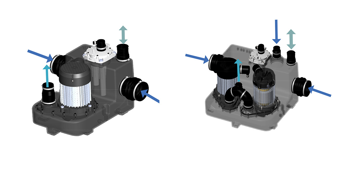 Obě varianty disponují schopností čerpat odpadní vodu do velké výšky (Hmax: 18 m) a jsou dodávány včetně externího ovládacího boxu s optickým i akustickým alarmem. Varianta se dvěma čerpadly je navíc vybavena přípravou pro zapojení do centrálního monitorovacího systému (BMS).