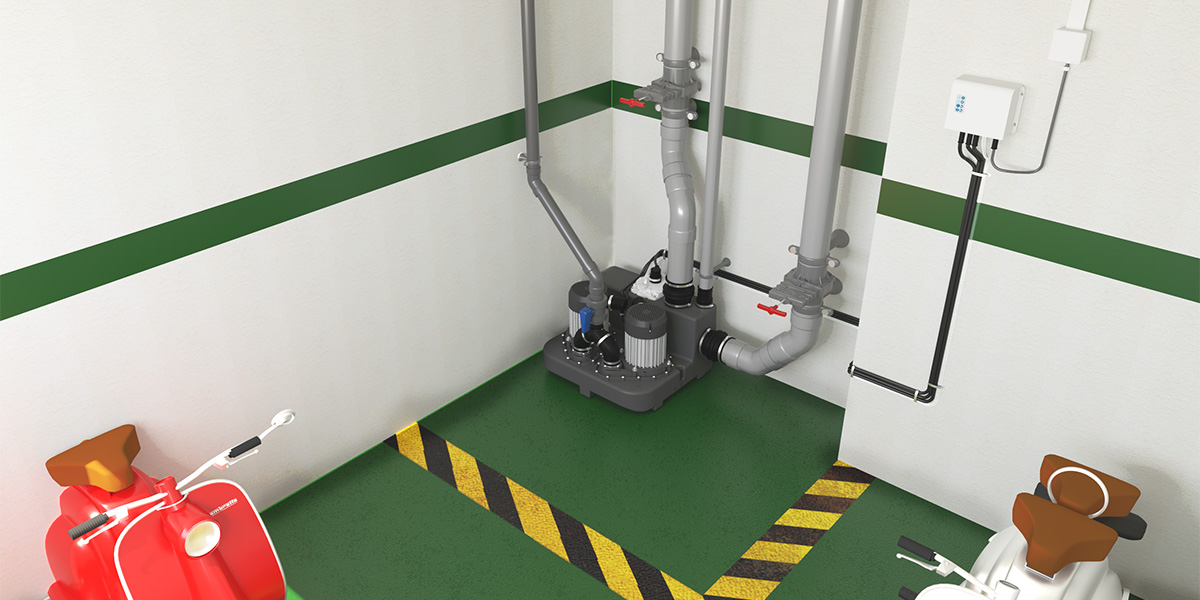 Varianta s jedním čerpadlem Sanicubic 1 GR HP je vhodná pro menší rodinné domy (3-5 obyvatel), apartmány nebo menší komerční provozy.