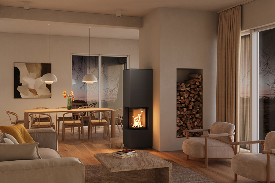 Aktraktivní kubistický design pro flexibilní přizpůsobení vašim požadavkům. Kamna se stanou středobodem vašeho domu.