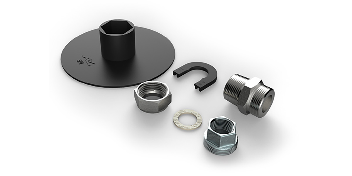 Roznášecí talíř zajišťuje rozložení hmotnosti trubky na větší plochu a spolu se zajišťovací sponou usnadňuje uchycení sprinkleru do stropu.