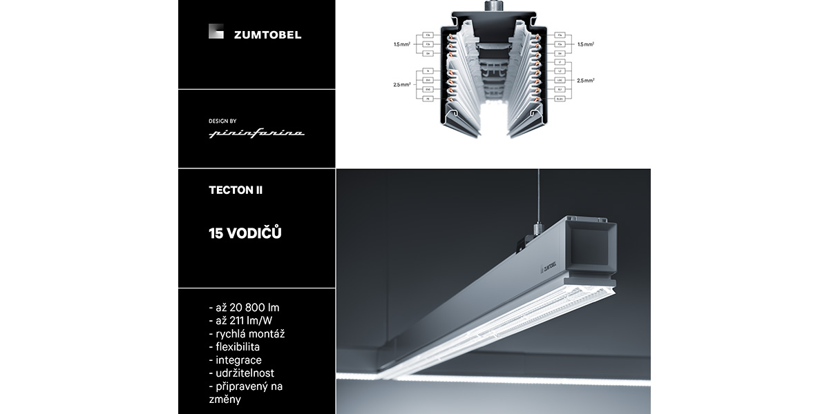 Zumtobel uvádí druhou generaci úspěšného lištového systému, jehož přednostmi jsou funkčnost, design a efektivní instalace. Na jeho vzhledu se podílelo renomované italské designérské studio Pininfarina, známé svým ikonickým přístupem ke kráse i funkčnosti. TECTON II je řešení pro udržitelnou budoucnost budov - až 69 % použitých materiálů je recyklovatelných. Svítidlo se přizpůsobí jakémukoli prostoru, aplikaci i požadavkům zákazníka.