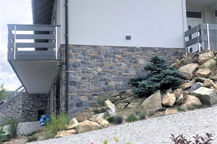 Tento typ obkladu je nutné spárovat. Nepravidelné tvary, vhodné kombinovat se dřevem.