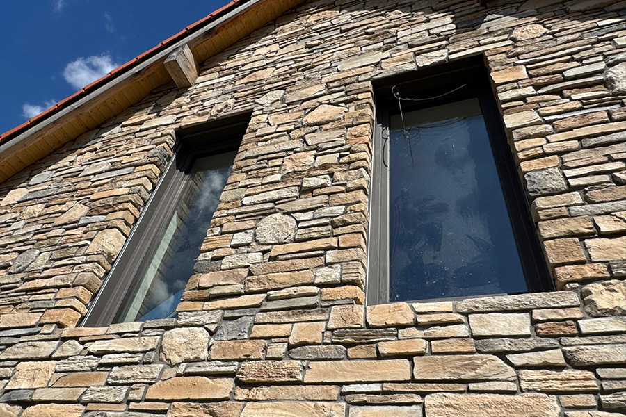 Castelo je kamenný obkladový aglomerát ve tvaru štípaných skalních úlomků....